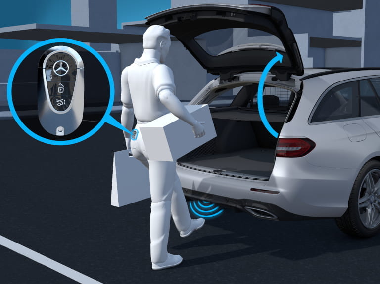 Dank der HANDS-FREE ACCESS Funktion wird das Öffnen und Schließen der Heckklappe nun berührungslos ermöglicht. Der Sensorbereich unter dem hinteren Stoßfänger erkennt dabei eine Kickbewegung Ihres Fußes. Diese praktische Technologie erweist sich als äußerst nützlich, besonders wenn Sie vom Einkaufen schwer beladen zurückkommen.