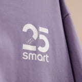 Das Original smart Kurzarm T-Shirt hat einen modernen, entspannten oversized Fit mit Rundhalsausschnitt und einen asymmetrisch platzierten smart Logo-Print mit always unconventional Slogan und 25 Jahre Logo in Kontrastfarbe Weiß auf dem Rücken.