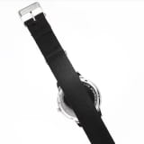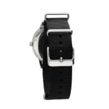Mit dieser sportlich-eleganten Herrenuhr behalten Sie die Zeit immer im Blick. Das Edelstahlgehäuse wird durch eine schwarz PVD-beschichtete Lünette stilvoll ergänzt, während das leichte Nylon-Natostrap vielseitige Tragemöglichkeiten bietet.