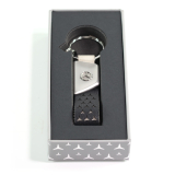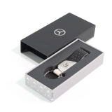 Ob Haustür-, Wohnungs- oder Büroschlüssel: Am Schlüsselanhänger mit erhabenem Mercedes Stern und doppellagiger Schlaufe aus Apfelleder finden alle wichtigen Schlüssel ihren Platz. Dazu ist der Anhänger neben einem größeren Spaltring mit gravierter Mercedes-Benz Wortmarke mit drei zusätzlichen Minispaltringen ausgestattet, die ein schnelles und einfaches Wechseln einzelner Schlüssel erlauben.