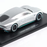 Spektakuläre Proportionen geprägt durch einen langen Radstand und betont kurze Karosserieüberhänge, stark ausgeprägte Schultern, große Räder, eine markante Abrisskante am Heck und die sternförmige Lichtsignatur der Hauptscheinwerfer - das Vision AMG Showcar lässt Perfektion wahr werden. Denn das Konzeptauto zeichnet sich insbesondere durch seine fließenden, vollen Flächen aus, bei denen die Fugen auf ein Minimum reduziert sind und alles an eine monolithische Skulptur erinnert. Auch die geschlossene AMG Kühlerverkleidung mit beleuchteten Streben und die außergewöhnliche Lichtsignatur mit Stern bestärken das außergewöhnlich sportliche Hightech-Seamless-Design des Showcars. Als Miniaturmodell lässt das Vision AMG Showcar die sportliche Eleganz auch in die heimische Sammlung Einzug halten. In höchster Detailtreue nach den original CAD-Daten umgesetzt und im authentischen Farbton lackiert, stellt das Präzisionsmodell ein zukunftsweisendes Highlight dar. Das aus über 25 Einzelteilen handmontierte Modell ist auf einem Sockel befestigt und wird in einer Mercedes-AMG Verpackung geliefert.