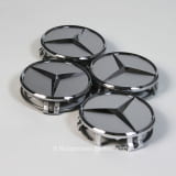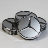 Original Mercedes-Benz Nabendeckel im Satz (4 Stück) in sterlingsilber mit Chromstern.