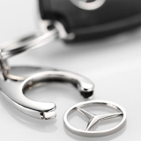 Original Mercedes-Benz Schlüsselanhänger mit Spaltring und drehbarem Mercedes-Stern poliert aus der Mercedes-Benz Collection.