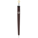 Der Automatik-Gästeschirm 300 SL lässt Sie nicht im Regen stehen. Dieses Accessoire mit braunem Bezug aus 100 % Polyester-Pongee und silberfarbenem Logodruck ist allerdings mehr als ein einfacher Schirm. Hierfür sorgt zum einen der exklusive Griff in Schaltknaufoptik. Zum anderen bestätigen Komponenten wie Fiberglasschienen und ein 14 mm verchromter Stahlstock mit durchgehendem Stoß die Qualität der „Windproof“-Ausführung mit wasser- und schmutzabweisender Spezialbeschichtung.