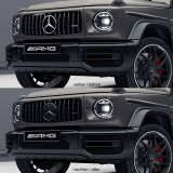 The exclusive AMG specific dark chrome Panamericana radiator grill from the AMG G 63 can be installed in every AMG G 63 of the W463A series (facelift). The vertical struts give the vehicle a sporty dynamic.