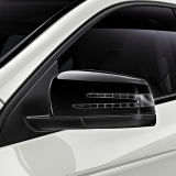 Black, high-gloss Mercedes-Benz Sport Equipment exterior mirror housings for enhanced aerodynamics and an individual, sporty and dynamic look.