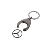 Black colored key fob with rotating & removable shopping chip in the shape of a Mercedes-Benz star.
