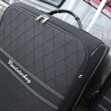The 2-pieces Roadsterbag-suitcase-set is made of special nylon and special leatherette with lozenge pattern. The handles is made of italian leather, matching with the interior of the trunk, for the A-Class W177