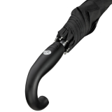 With the genuine Mercedes-Benz stick umbrella in black, it can be opened automatically with a release button, so that protection against moisture is provided at the push of a button. An iconic plastic round hook handle with an inserted silver-colored 3D star badge not only sets an optical accent, but also ensures that the shade lies comfortably and securely in the hand. Even strong winds cannot harm the umbrella quickly. Thanks to the "windproof" design, even strong winds cannot harm the glider. The highlight of the stick umbrella is a 4C heatprint logo print on the front.