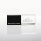 This exclusive USB stick in Mercedes-Benz 300 SL design combines elegance and functionality. The high-quality glass element contains a precise 3D laser engraving of the legendary 300 SL Gullwing, which is impressively illuminated by an integrated LED when connected.