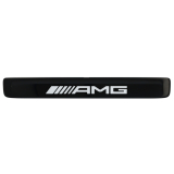 The genuine Mercedes-Benz AMG interchangeable cover in black with white lettering for the door sill with LED lighting. The interchangeable cover not only impresses with its easy installation and precise fit, but also with its durability.