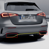 the black exhaust tips are factory-installed in the time-limited Edition One package and are the ideal complement to the Night Package (Code P55), which can be ordered from any A-Class W177 ex factory.