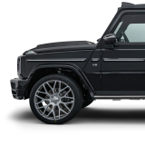 The Exclusive Monoblock Y rim design in the Platinum Edition is the ideal complement to the BRABUS WIDESTAR conversion kit and offers a perfect mix of strength and lightweight construction. Thanks to the low offset (ET05), the wheels stand perfectly in the widened fenders and raise the G 63 AMG to an even higher level.