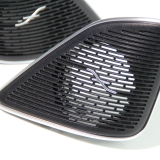 The Burmester speaker covers are exchanged for the factory-installed covers in the A-pillar, thus giving the interior an even higher quality look. The existing speaker cover must be clipped out for assembly. The Burmester covers have no effect on the sound quality of the speakers. The covers are suitable for vehicles with a black headlining.