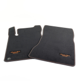 Genuine Mercedes-Benz velour floor mats in black with orange stitching for the CLA 118 Coupé and Shooting Brake. The floor mats are part of the limited Street Style Edition.
