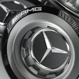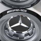 Origineel Mercedes-Benz AMG naafdoppen met centraal sluitsysteem ontwerp, set van 4 stuks in himalaya grijs mat met chromen ster.
