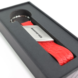 Geen gezoek meer naar verloren sleutels! De AMG sleutelhanger biedt de ideale oplossing om al uw belangrijke sleutels op één plek veilig op te bergen. Met zijn ruitvormige metalen onderdeel en de rode lus van vegan appel-leer is deze hanger niet alleen stijlvol, maar ook praktisch. Uitgerust met een grotere platte splitring en drie extra mini-splitringen, maakt hij het bevestigen en verwijderen van afzonderlijke sleutels kinderspel.