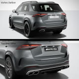 Deze diffusor wordt standaard gemonteerd in de GLE 63 S AMG en kan op elke Mercedes-Benz GLE V167 met AMG styling exterieurpakket worden nagebouwd.