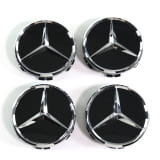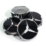 Naafdoppen set 72 mm zwart glanzend met chromen ster Original Mercedes-Benz